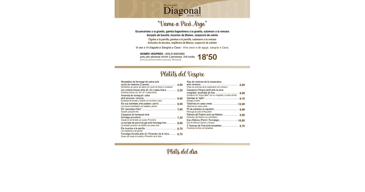 Nuestro menú de Restaurant Diagonal